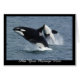 Twee dodelijke walvissen of Orca (Orcinus orca) die breken in de noordelijke Stille Oceaan bij de Aleutische eilanden van Alaska. Om deze kaart te personaliseren, vervang de bestaande tekst door een naam of kort bericht zoals "Happy Birthday" "have a Great Trip" "Love and Blessings" "have a Whale of a Time" of wat u maar wilt. Vliegende walvissen reizen gewoonlijk in familiegroepen of peugen en kunnen in elke oceaan van de wereld worden gevonden, van de tropische zeeen tot de ijzige arctische en antarctische wateren. Om de zwarte grens/achtergrondkleur te veranderen, te gebruiken gelieve de aanpassingseigenschap. U kunt ook aanpassen om de tekengrootte, stijl of kleur te wijzigen, het afbeelding te verplaatsen of het formaat ervan te wijzigen. De opties zijn eindeloos. Orca of killerwalvissen zijn de grootste leden van de familie van de oceanische dolfijn. Deze zwarte en witte zeezoogdieren zijn intelligente, sociale dieren met een grote verscheidenheid aan vocaliseringen. Als spirituele gidsen of kalmerende dieren hebben ze een complexe betekenis en kunnen ze het reizen, het gezin, de dromen en het onderbewustzijn, het onderwijs, het leren en de bescherming vertegenwoordigen. Vele walvissen zijn in de loop van de geschiedenis invloedrijk geweest aan de cultuur en mythologie van veel landen. In de Indiaanse thuiswijk worden ze gezien als de zielen van vertrekkende vrienden en familieleden. PD foto.