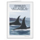 Orca Whales #1 - Seward, Alaska - Vintage Travel Poster werd in 2007 opgericht. Dit afbeelding toont scènes van Seward, AK.