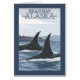 Orca Whales #1 - Skagway, Alaska - Vintage Travel Poster werd in 2007 opgericht. Dit afbeelding toont scènes van Skagway, AK.