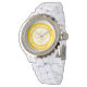 Laat het schitteren en schitteren met de Women's Rhinestone Watch! Gemaakt met een bergkristal geaccentueerde wijzerplaat en een zwart of wit emaille armbandje, is dit horloge de meest trendy toevoeging voor om je pols. Pas het gezicht aan met jouw naam en design voor een stijl en straal voorbij de tijd. Polshorloge voor dames Materiaal: Bezel: Metaal met kristallen Gezicht: Legeringsriem: Emaillegering Afmetingen: Gezicht: 1,14 "Diameter riem: 8" x 0,7" Hoesje: 1,6 "Diameter Gewicht: 0,254 lb 3-handse analoge Japan Quartz® Briefpapier bezel Volledige kleur custom printing op gezicht Trifold foldover sluiting Waterbestendigheid: Tot 3 ATM (98,4 ft) 1 jaar fabrikanten beperkte garantie Batterij inbegrepen Dit product wordt aanbevolen voor 13+-jarigen