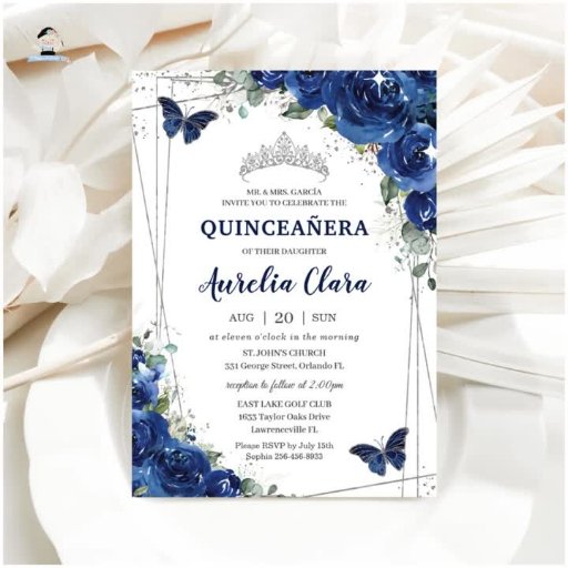 Chic Royal Blue Floral Quinceañera SilverOntworpen door The Happy Cat Studio