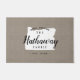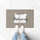 Moderne boerenboerengepersonaliseerde doormat met je familienaam in je staatskaart. Faux burlap canvastextuurachtergrond. Klik op Aanpassen om uw eigen tekst en afbeeldingen toe te voegen en een uniek ontwerp te creëer!