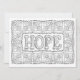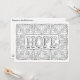 Hoop - Een dainty bloempatroon maakt omhoog een lijst voor het woord "Hoop" in grote algemene letters met een vrouwelijk lettertype. Kleur deze kaart en voeg uw bericht aan de rug toe. Klik op Aanpassen voor meer papier- en grootteopties. Van OrnaMENTALs™ voel Goede Woorden het Kleuren Boek. OrnaMENTALs die voor Alle Leeftijd kleurt, Ontwerp #0117. Originele illustratie door Sue Chastain, suziqcreations.com.