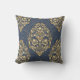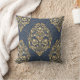 Mooi worp kussen met sierbloemen gouden blauwe damast patroon maakt een geweldige home decoratie. Perfect cadeau voor verjaardag, bruiloft of housewarming.