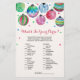 Dit ornament "hoe goed ken je het bruidspel" is perfect voor een vrijgezellenfeest in december. Aan de voorkant van de gamekaart staat "hoe goed ken je de bruid" en aan de achterkant van de kaart staat "wat er in je tas zit". Het ontwerp kenmerkt rode krullende manuscripttekst met ornamenten die bij de bovenkant van de spelkaart, en kleurrijke rode groene en blauwe confetti die neer naar de tekst vallen. Pas de voorzijde van de kaart aan met de naam van de bruid- en vrijgezellenfeest-datum.