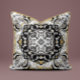 Intricate mandala pillow in golden beige and black. Elegant linework and ornamental detail add refined style to any room.