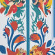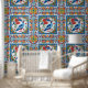 Dit luxe behang heeft een patroon gebaseerd op Ottomaanse china en pauw motieven.