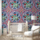 Dit luxe behang heeft een patroon gebaseerd op Ottomaanse china met bloemmotieven en marineblauwe randen.