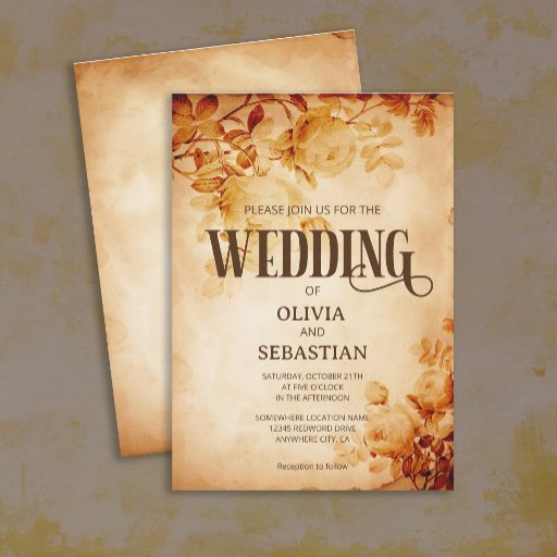 Vintage Old Parchment with Rose WeddingOntworpen door Maryna lohvynenko