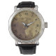 Oud grungy romein numerieke wijzerplaat op maat mannen Creëer uw eigen aangepaste merknaam luxe jurk horloge. Classy rustieke horlogewijzerplaat ontwerp met fijne indices inclusief minuten en uren. Water beschadigd vervaagd geel papier achtergrond afbeelding print. Voeg uw eigen aangepaste monogram, gepersonaliseerde naam, ontwerpernaam, initialen, geboortejaar, datum, logo, icoon, foto afbeelding etc. Klassiek horlogegezicht met elegante typografische sjabloon. Luxe uurwerk voor hem of haar. Maak er een cool cadeau van voor verzamelaar, bruidegom, groomsmen, vader, vader, man, broer, zoon, grootvader, opa, stiefvader, oom, collega, medewerker, bedrijfsbaas, zakenpartner, collega, beste vriend, docent, coach of gepensioneerde persoon. Unieke monogrammed cadeau-ideeën voor Verjaardag, afstuderen, jubileum, pensioen, Feestdagen, bruiloftsfeest, diner, waardering, dienstverband, service etc. Grote overmaatse diameter rond 44 mm. Klassieke look met chique 22 mm zwart lederen polsbandje. achtergrondkleur. Perfect voor de 20e 30e 40e 50e 60e 70e 80e 90e jaar vieringen. Betaalbare faux historische kwarts horloges onder $100. Leuk voor casual dagelijks gebruik en speciale gelegenheden. Ook verkrijgbaar voor andere modellen met kleinere wijzerplaat, bruin leer of stalen armband. Retro replica van / hommage aan antiek uurwerk of klok.