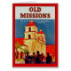 Vintage-poster voor de promotie van de Oude Missies en Santa Barbara in Californië, VS.