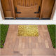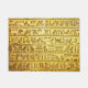 Een gele deurmat van oude hiërogliefen gegraveerd op steen.