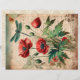Stap binnen in een wereld van vintage charme met ons Vintage Poppies & Dragonfly Botanical Ephemera ontwerp. Dit prachtige stuk bevat een schitterend boeket rode klaprozen, waarvan de levendige bloembladen barsten van het leven en de kleur. Het weelderige groene gebladerte contrasteert prachtig met de rijke rode bloemen en vormt een opvallend middelpunt dat de blik trekt. Boven de klaprozen zweeft sierlijk een delicate libel, waarvan de vleugels iriserend en glinsterend zijn in tinten blauw en groen, wat een vleugje gratie en beweging aan de scène toevoegt.