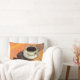 Oude kop koffie, schotel, lepel, retro diner kussen