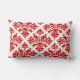 Een klassiek uitziend groot bloemendamask patroon in rood met een witte achtergrond.