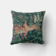 Een vintage tapijtkussen met een afbeelding van konijnen in een bos.