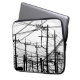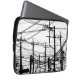 Dit zwart-wit uitzicht van elektriciteits- en telefoonlijnen maakt een boeiend artistiek perspectief op de technologische infrastructuur van onze moderne wereld. Dit kan echter gewoon een momentopname in de tijd zijn, omdat steeds meer nutsdiensten ondergronds gaan of naar draadloze transmissie gaan.