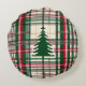 vakantie inrichting. Een ouderwetse rode truck met een kerstboom in de rug. waterverf stijl ai art. Back of pillow heeft een feestelijke kerst plaid achtergrond in rood en groen.