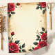 Voeg een vleugje klassieke romantiek toe aan je projecten met dit charmante vintage-bloemenpapier. Het toont een mooie rand van rode rozen en elegante bladeren rondom een verouderd perkamentachtig middenstuk. Met onbeperkte creatieve mogelijkheden is dit papier perfect voor uitnodigingen, scrapbooking, junkjournaling en andere gepersonaliseerde projecten. Gedrukt in hoogwaardige, full-color op dun mat papier, is het ontworpen om een frisse, professionele uitstraling te geven aan je persoonlijke of zakelijke poststukken. Voeg persoonlijke foto's en tekst toe zonder extra kosten, waardoor het een veelzijdige en memorabele aanvulling is voor elk project.