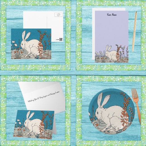 Spring and Easter White Rabbit Sitting in FlowersOntworpen door Margie R