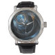 Rond de wereld Abstracte Kunstriem van leder met zwarte lederen riem