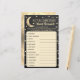 Dit "over the moon" spel is ideaal voor iedereen die dit jaar een baby shower heeft. Het ontwerp is voorzien van een gouden maan met sterretjes op een krijtbord effect achtergrond en gemakkelijk te personaliseren sjabloon formulering. Geef deze spelbladen gewoon aan je gasten om te spelen onder de douche, wie de woorden eerst ontwarren, wint een prijs naar keuze! Antwoorden: 1) Luiers 2) Baby shower 3) Wipes 4) Kwekerij 5) Deken 6) Fopspeen 7) One-sie 8) Swaddle 9) Activity Mat 10) Teether 11) Bassinet 12) Bottle 13) Rattle