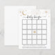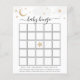 Baby shower bingo-kaart met grijze wolken en gouden sterren voor de waterverf. Een leuke manier om met douchegasten te communiceren terwijl de mammie haar cadeautjes opent.