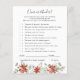 Deze baby shower gamekaart is voorzien van mooie zachte winterfloralen van de waterverf in tinten rood en wit, die zijn uitgebalanceerd met een zachte groen, waardoor het een warm en luchtachtig palet wordt. Verander achtergrondkleur of voeg grafiek toe om uw douchethema aan te passen. Neem contact met mij op voor een aangepaste bestelling. Natuurlijk is het niet nodig dat je spelletjes speelt op het baby shower, maar denk er eens over na: je gaat een groep van alle leeftijden hebben, en de meeste gasten hebben elkaar waarschijnlijk nooit ontmoet voor het feest. Het mengen in een paar van deze klassieke baby showers spellen is een perfecte manier om het ijs te breken. Deze professioneel ontworpen kaarten zijn snel aanpasbaar. Voeg uw douanetekst aan dit ontwerp toe door de "Edit this design sjabloon"vakjes op de rechterkant van het punt te gebruiken, of blauwe "pas het"knoop aan om de tekst te schikken, de doopvonten en de kleuren te veranderen en extra informatie of afbeeldingen aan dit ontwerp ook toe te voegen. Klik op "Verder aanpassen" om de volledige bewerkingsopties te openen. Als je coördinerende objecten nodig hebt (dank je kaarten, enz.), kun je contact met me opnemen voor een aangepaste bestelling. ****Voor aangepaste aanvragen heb je mijn hulp nodig. Plaats deze koopwaar niet in je kar. Stuur me in plaats daarvan een e-mail naar lauralise@iyhtvdesigns.com Een link naar je koopwaar wordt naar je gestuurd zodra het object beschikbaar is. U kunt die link gebruiken om uw bestelling te plaatsen. Gelieve maximaal 48 uur toe te staan.