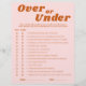 De "Over or Under Last Disco Vrijgezellenfeest Game" voegt een scheutje retro plezier toe aan je vrijgezellenfeest of vrijgezellenfeest. Als een spel met een discothema is het het perfecte entertainment voor een boho-discotheek of een tropisch geïnspireerd feest. Met zijn levendige tinten van rood, roze en sinaasappel legt dit spel de essentie van retro disco vibes vast, waardoor het een ideale keuze is voor een laatste disco-vrijgezellenfeest of een retro-thema-evenement. Of je nu gokt over of onder, het is zeker om te lachen en levendige concurrentie tussen uw gasten, het creëren van onvergetelijke herinneringen in de aanloop naar de grote dag.