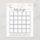 Baby shower bingokaart met waterverf roze wolken en gouden sterren. Een leuke manier om met gasten te interacteren terwijl de aanstaande moeder haar cadeaus uitpakt.