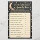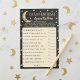 Dit "over de maan"-spel is perfect voor iedereen die dit jaar een babyshower heeft. Het ontwerp bevat een gouden maan met sterren op een krijtbord-effect achtergrond en makkelijk aan te passen sjabloontekst. Geef deze spelkaarten gewoon aan je gasten om te spelen op de shower, wie het dichtst bij de werkelijke totale kosten komt, zonder eroverheen te gaan, wint een prijs naar keuze!