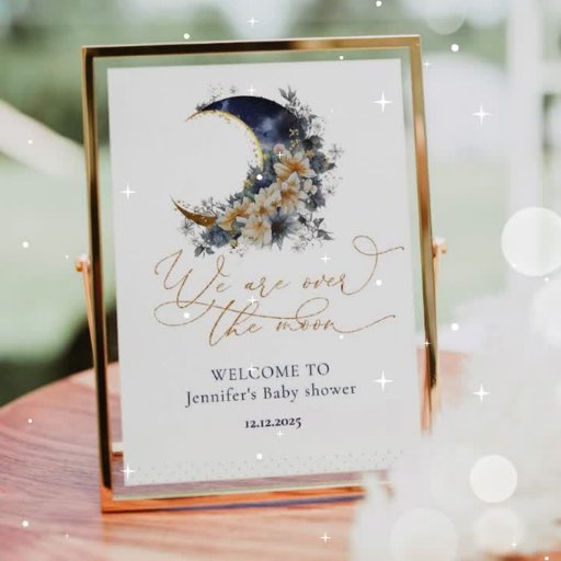 Over the moon navy baby shower welkom Poster Matching items beschikbaar.