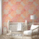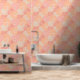 Een overlappend ontwerp met een pastelperzikkleur en traditionele Chinese fans.