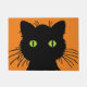 Oversized zwarte kat met groene uitpuilende ogen deurmat