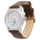 Owl Blue Roze Cherry Blossom Numbers Monogram Horloge