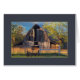 Kaart met kleurrijke foto van een oude schuur in de voetheuvels van de Ozark-bergen.