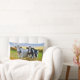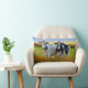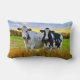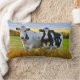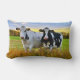 Als je van koeien houdt, dan is dit kussen zeker een hit met je. Het beschikt over een afbeelding van een paar zwarte en witte Holstein zuivel koeien in een kleurrijke herfstweide met een grijs en geel vroeg avond bewolkte lucht boven.