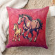 Een dynamische weergave van twee paarden, een grotere en gespierde met een stromende manen, en de andere, een kleiner veulen, beide afgebeeld in een energieke houding. Ze zijn geplaatst tegen een achtergrond van kleur, met de nadruk op hun sterke vormen en beweging.