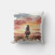 Rijden in de zonsondergang kussen zal opfleuren elk decor. Vrouw rijder op het parcours met een prachtige zonsondergang voor haar.