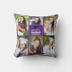 Dit moderne paarse senior afstuderen fotocollage kussen is voorzien van uw favoriete 6 studentenfoto's. Dit afstuderen keepsake-cadeau bevat stijlvolle witte typografie van uw middelbare school of universiteitsnaam voor de klas van 2025. Pas dit leuke kamerdecor aan met je afstudeerjaar onder het zwarte afstudeerders pet.