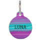 Dit is een paars en blauwgroen waterverf strepen het label van huisdieren identiteitskaart Voeg gewoon de naam van je huisdier en je informatie op de achterkant toe.