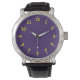 U zult show van uw goede smaak als u dit klassieke horloge met een paarse gezicht en gele cijfers koopt.