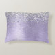 Personaliseer eenvoudig dit trendy chique accentkussenontwerp met zilveren sprankelende faux glitter op een paarse geborstelde metalen achtergrond.