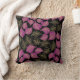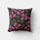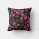 Paarse en goudbrede bladeren op zwarte kussen. Het bevat een prachtig patroon van brede bladeren in paars en goud op zwarte achtergrond.