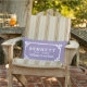 Het stijlvolle lumbale kussen is voorzien van een wit Grieks, geometrisch grensontwerp en een monogram dat gepersonaliseerd kan worden met een getrouwde of familienaam, een datum die is vastgesteld voor het jaar dat het lijst is gehuwd of het jaar dat het eerste kind is geboren. Pas de amethyste paarse achtergrond aan om met uw openluchtdecor te coördineren.