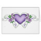 Een prachtig paars hart omgeven door paarse rozen en groene wijnstokken. met jouw tekst.