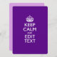 Uw gepersonaliseerde Keep Calm gezegde op een fijn aangepast diepgaand paars accentkleurendecor. Een gepersonaliseerd gezegde van de Stijl van de Kalm van het Levensonderhoud op één van een vriendelijk gift. Een grappige of grillige poging om uw creatieve woorden op twee bewerkbare tekstregels te zetten. Vergeet niet om de KAPITAALletters voor de beste resultaten te gebruiken. De borduurlijke design zijn beschikbaar in een brede selectie van populaire kleurenopties. Gebruik de link "Vraag deze ontwerper" om contact met ons op te nemen met uw speciale ontwerpverzoeken of voor hulp bij uw aanpassingsbehoeften.