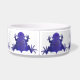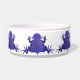 Paarse en witte kikkers ontwerpen gezelschapsbowlen. Speciaal hondenvoer voor paarse kikkerventilatoren.