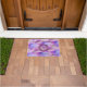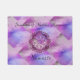 Unieke en elegante Doormat met prachtige mandala op gepatterde paarse tonen. De decoratieve tekst van de doopvonttypografie de groet "Namaste"kan gemakkelijk met uw eigen woorden worden aangepast. Een cool en stijlvol progressief New age ontwerp om vrienden en familie welkom te heten in je huishouden.