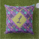 Paarse Polka Dot Passion Boho Lattice Pillow. Stijlvolle, Paarse, gepatenteerde afdruk voor de gedurfde Boho Geïnspireerde stijl. Een mooi stuk om een stoel, bank of bed op te kleden. Of koos een buitenkussen voor stijl uit de pool of de patio.